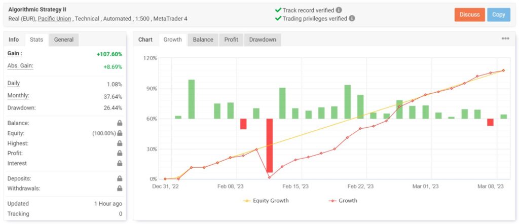 No nos gusta el término EA o bot, ya que estos sistemas fijos no funcionan a largo plazo debido al flujo del mercado o no tienen un stop loss. Por este motivo, utilizamos algoritmos que se adaptan al flujo actual del mercado a diario y, como muy tarde, semanalmente (trading semiautomático y totalmente automático para usted mediante una simple copia).