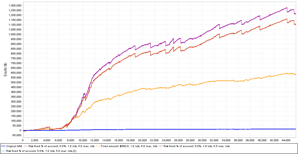 La simulación de gestión monetaria es otra herramienta útil para estimar el rendimiento potencial de nuestras estrategias en diferentes condiciones de mercado. Esta simulación modela los posibles resultados de distintos métodos de gestión monetaria, como la fijación de niveles de stop-loss y take-profit, así como el tamaño de las operaciones.